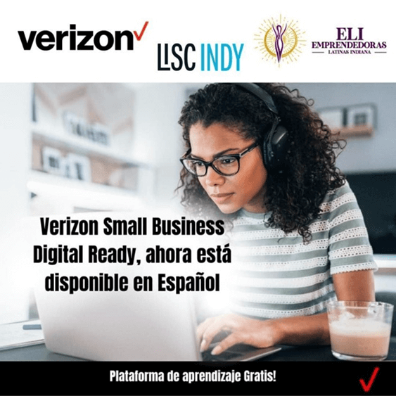 Cuenta con un programa “ Verizon Small Digital Ready”, que capacita a las emprendedoras latinas en Marketing Digital y cursos empresariales, mentorías , eventos locales; donde las pequeñas empresas tienen grandes oportunidades como la de tener una subvención de $10 000 para lo cual es necesario llevar todos los cursos que están en su plataforma de educación digital : https://digitalready.verizonwireless.com/?utm_source=emprendedoras-latinas&utm_medium=partner&utm_campaign=digital-ready_local-partner_indianapolis%E2%80%8B