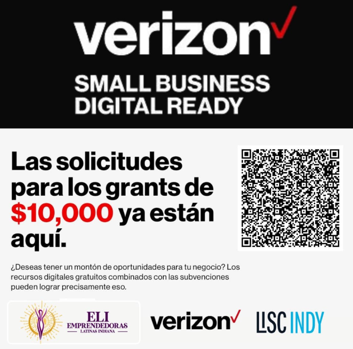 Además de los cursos gratuitos, las sesiones de asesoramiento y las tutorías ofrecidas a través del programa Verizon Small Business Digital Ready, Verizon, en colaboración con Indianapolis  LISC Emprendedoras Latinas  en  Indiana, concederá subvenciones a pequeñas empresas para fomentar su misión y compromiso.